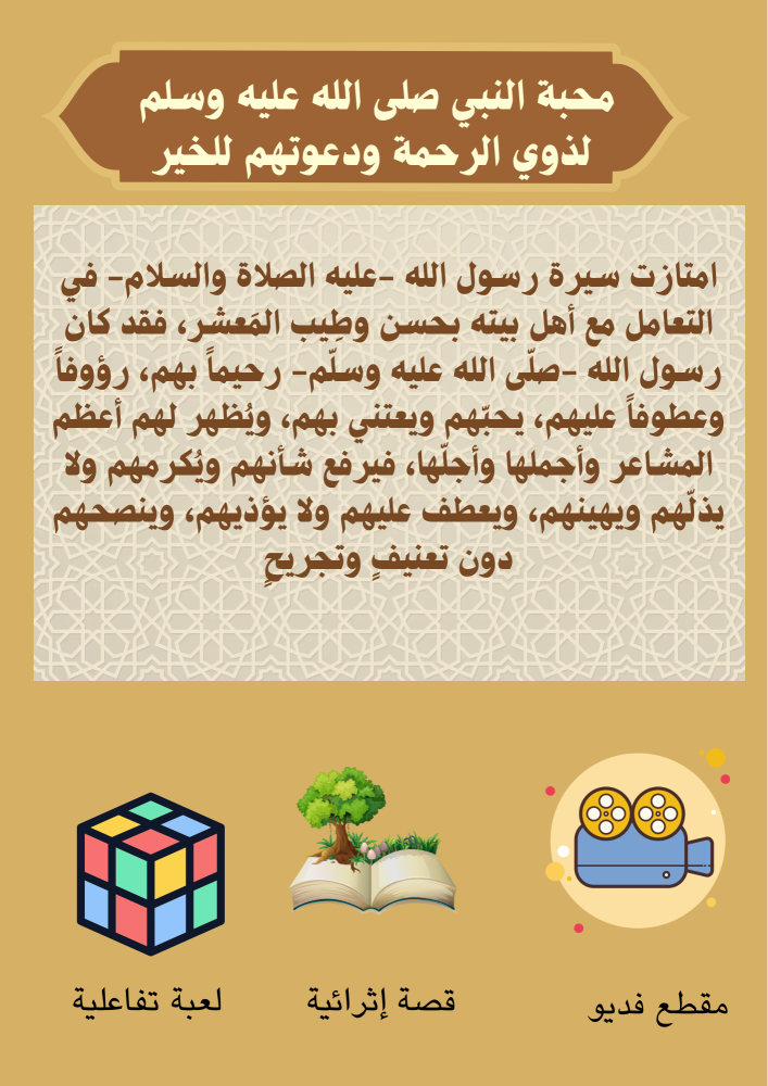 هذا الملف التفاعلي هو أداة تعليمية متكاملة تهدف إلى تبسيط دروس الدراسات الإسلامية لطلاب الصف السادس، حيث تم تصميمه بأسلوب سهل الفهم ومنظم يراعي احتياجات الطالب.
