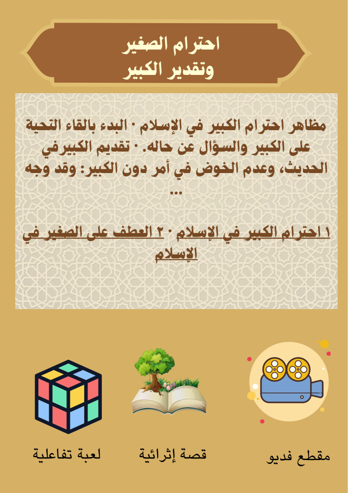 ملف PDF تفاعلي لمادة الدراسات الإسلامية للصف السادس ابتدائي يحتوي الملف على مقاطع فيديو وقصص اثرائية والعاب تفاعلية كما في الصور الموضحة في وصف المنتج