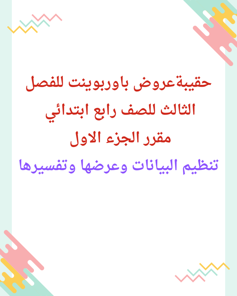 تشمل الحقيبة عروض باوربوينت جاهزة ومصممة باحتراف لدروس الفصل الثالث للصف الرابع الابتدائي، وفق المنهج السعودي، وتتضمن ما يلي: