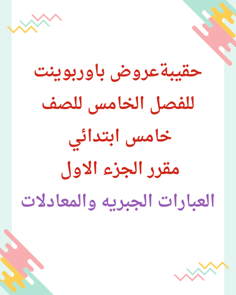 حقيبة عروض باوربوينت للفصل الخامس للصف خامس ابتدائي مقرر الجزء الاول العبارات الجبريه والمعادلات