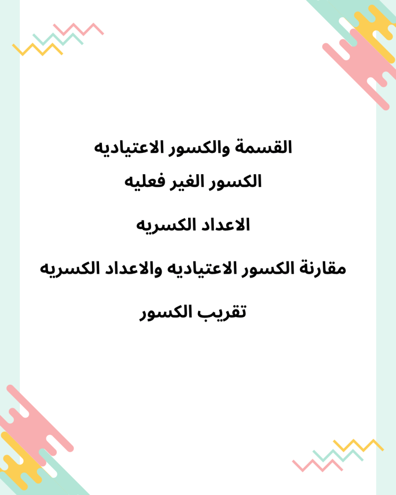 حقيبة تعليمية متكاملة تم تصميمها بعناية لدعم معلمات الرياضيات في تقديم درس “تقريب الكسور” للصف الخامس الابتدائي، وفق منهج وزارة التعليم السعودي، الفصل الدراسي الأول.