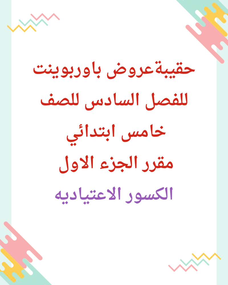 حقيبة عروض باوربوينت للفصل السادس للصف خامس ابتدائي مقرر الجزء الاول الكسور الاعتياديه