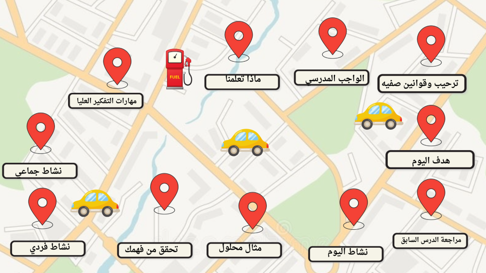 يتنقل الطلاب بين “محطات تعليمية” على شكل خرائط، تشمل: